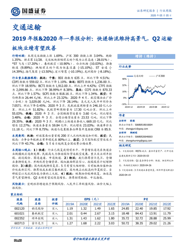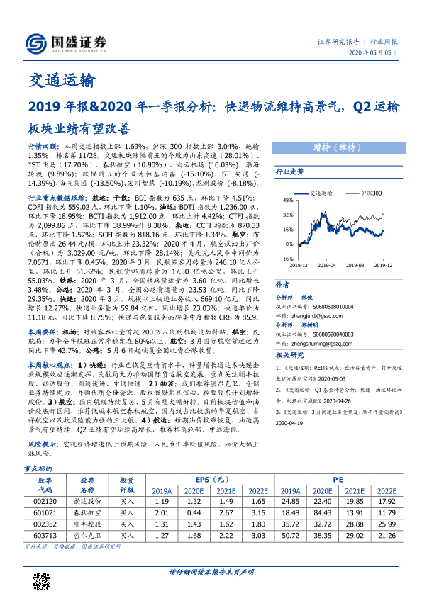 【国盛证券】【20200505】2019年报&2020年一季报分析:快递物流维持高景气,Q2运输板块业绩有望改善-35页