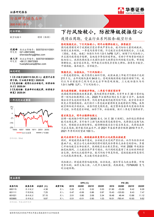 【华泰证券】【20200505】疫情后周期,受益行业系列报告-航空行业:下行风险较小,防控降级提振信心-3页