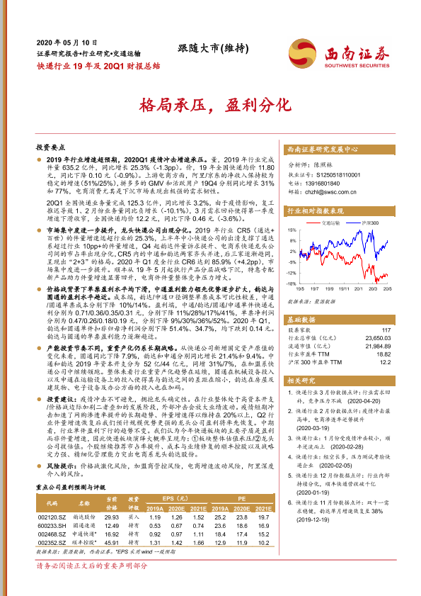 【西南证券】【20200510】快递行业19年及20Q1财报总结-14页