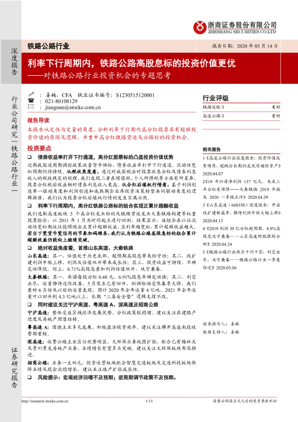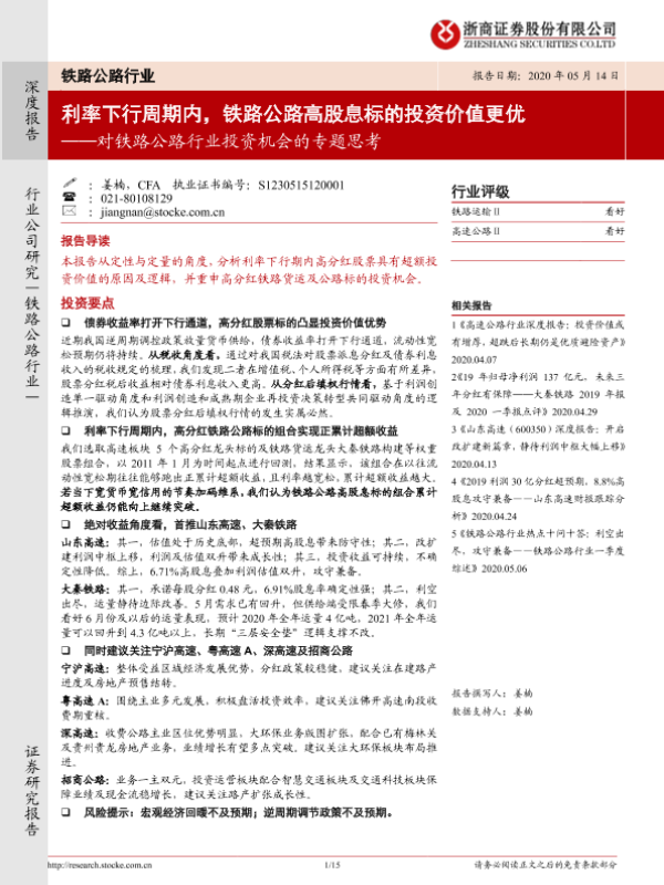 【浙商证券】【20200514】对铁路公路行业投资机会的专题思考-15页