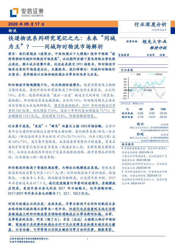 【安信证券】【20200517】物流行业深度分析:同城即时物流市场解析-21页