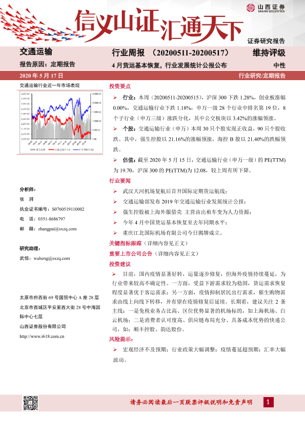 【山西证券】【20200517】4月货运基本恢复,行业发展统计公报公布-15页