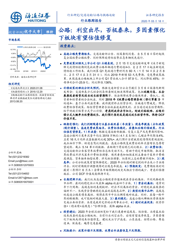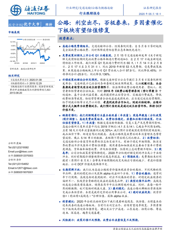 【海通证券】【20200518】公路:利空出尽,否极泰来,多因素催化下板块有望估值修复-5页