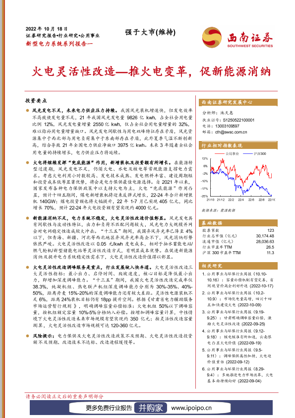 【西南证券】【20221018】新型电力系统系列一:火电灵活性改造-推火电变革,促新能源消纳-36页