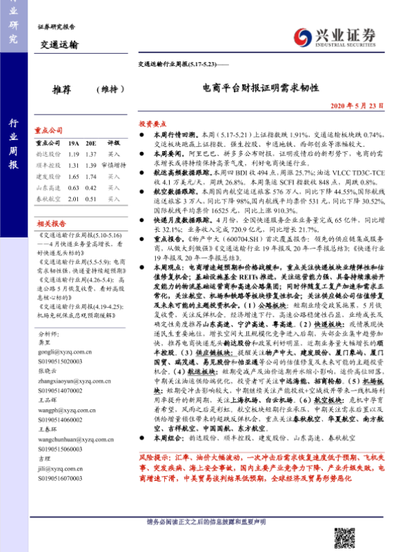 兴业证券 交通运输仓储邮政 2020年 PDF 1.23 MB