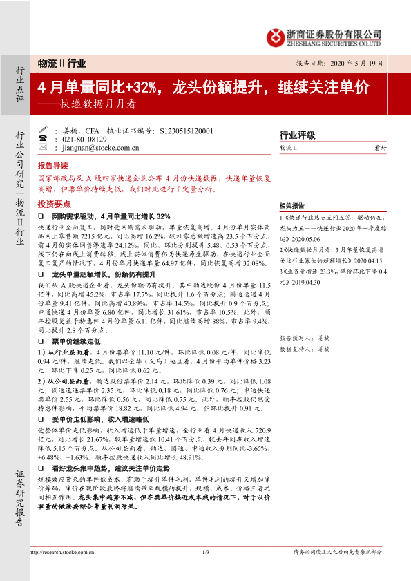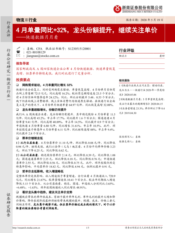 【浙商证券】【20200519】4月单量同比+32%,龙头份额提升,继续关注单价-3页