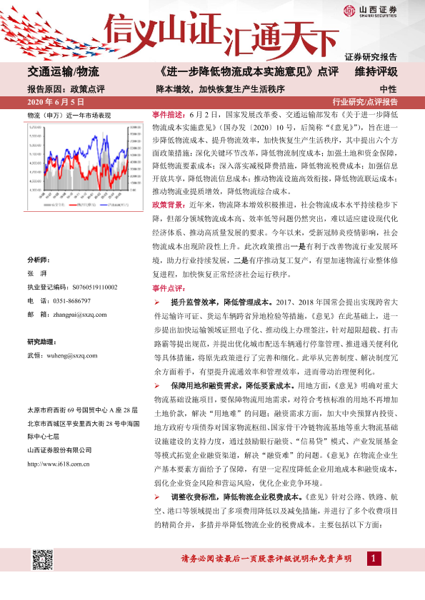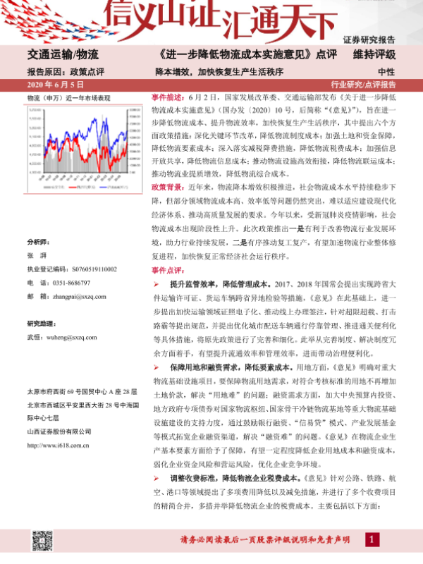 【山西证券】【20200605】《进一步降低物流成本实施意见》点评:降本增效,加快恢复生产生活秩序-3页