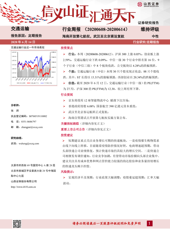 【山西证券】【20200614】交通运输行业周报:海南开放第七航权,武汉至北京客运复航-15页