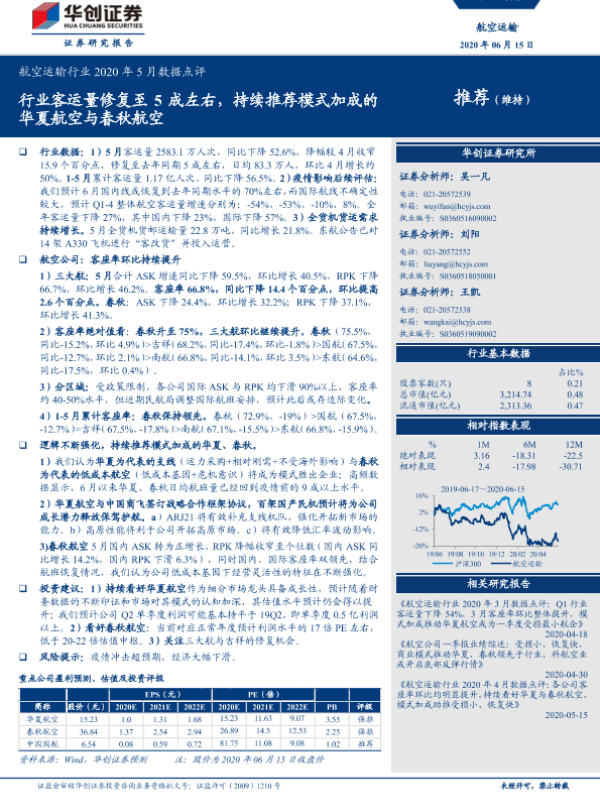 【华创证券】【20200615】航空运输行业2020年5月数据点评-11页