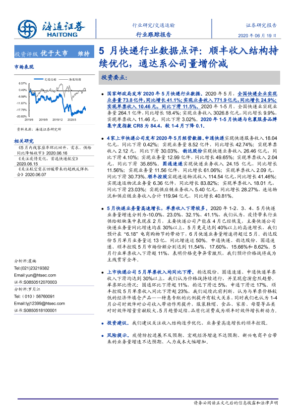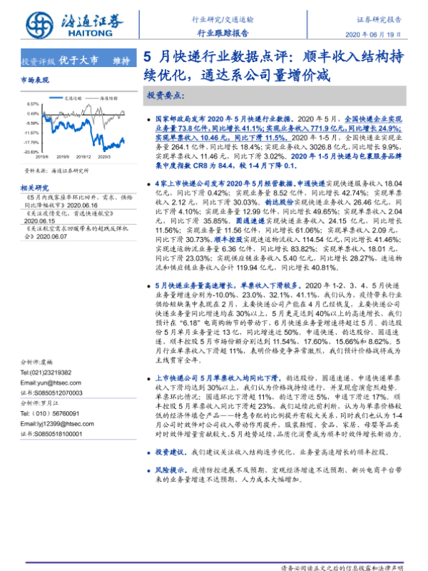 【海通证券】【20200619】5月快递行业数据点评:顺丰收入结构持续优化,通达系公司量增价减-4页