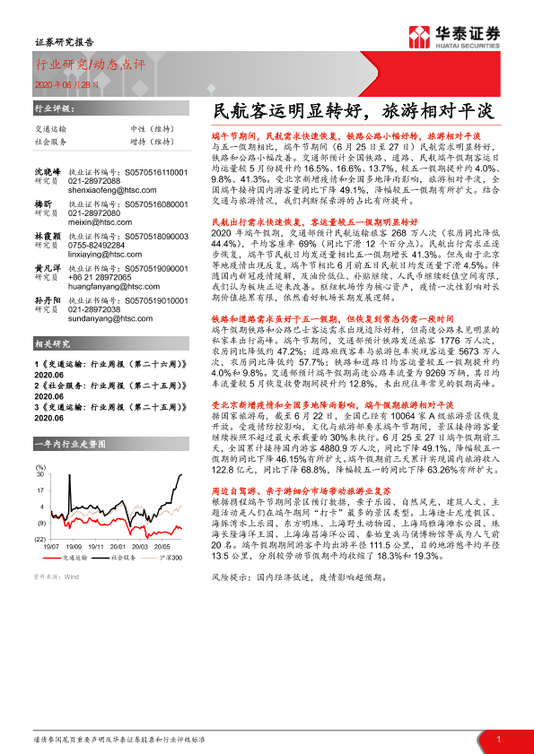 【华泰证券】【20200628】交通运输:民航客运明显转好,旅游相对平淡-3页