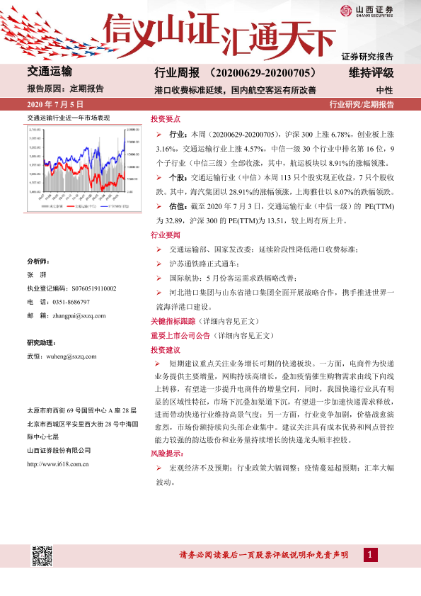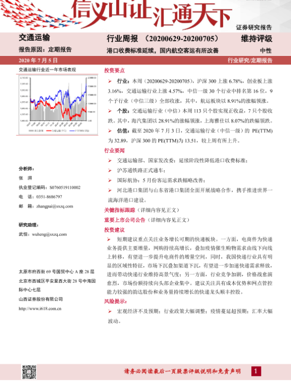 【山西证券】【20200705】交通运输行业周报:港口收费标准延续,国内航空客运有所改善-15页