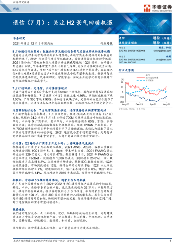【华泰证券】【20210812】通信行业(7月):关注H2景气回暖机遇-34页