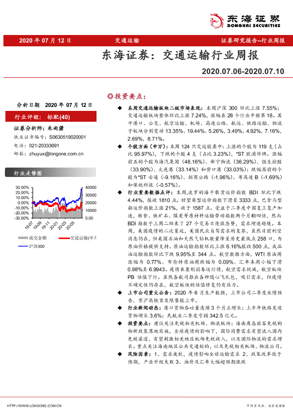 【东海证券】【20200712】交通运输行业周报-10页