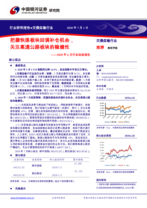 【银河证券】【20200701】2020年6月行业动态报告:把握快递板块回调补仓机会,关注高速公路板块的稳健性-51页