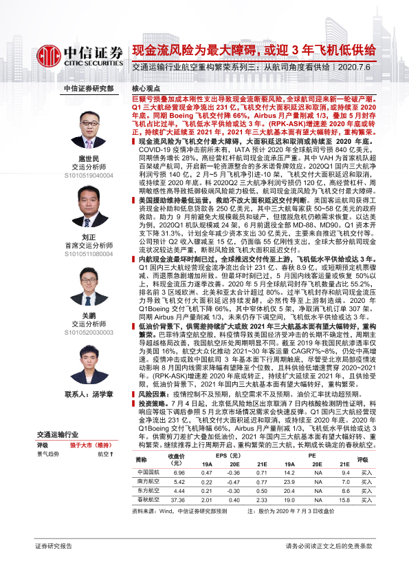 【中信证券】【20200706】交通运输行业航空重构繁荣系列三:从航司角度看供给-24页