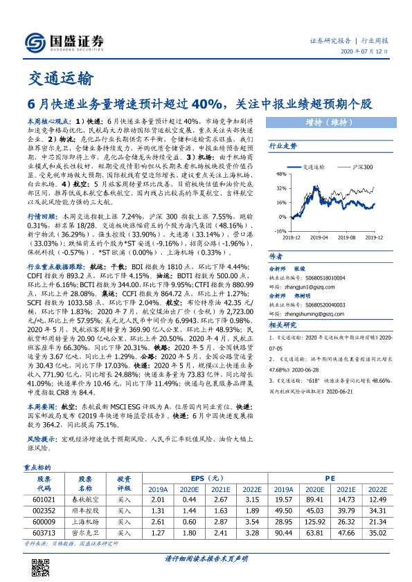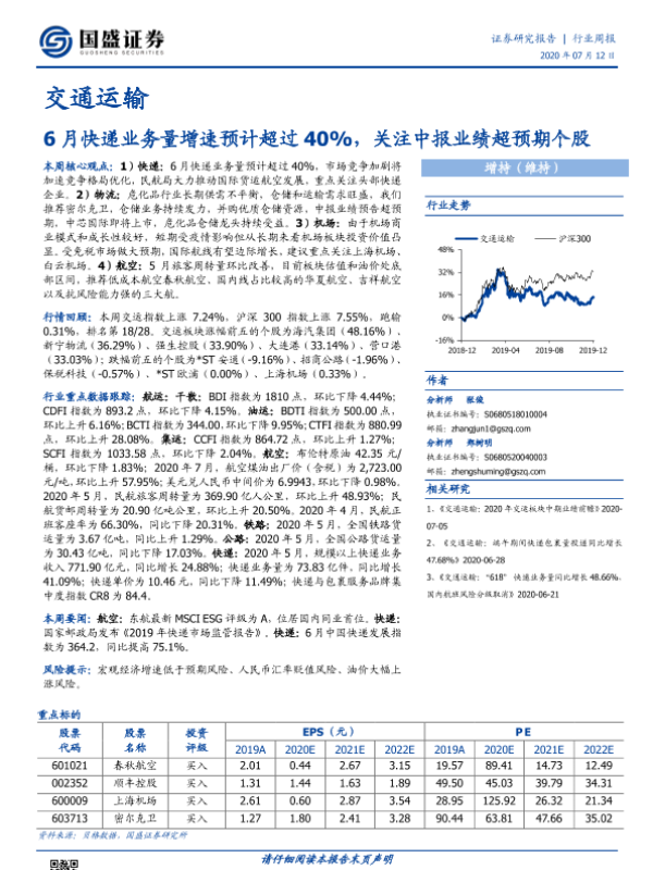 【国盛证券】【20200712】6月快递业务量增速预计超过40%,关注中报业绩超预期个股-19页
