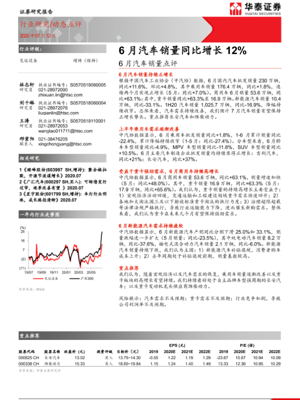 【华泰证券】【20200712】6月汽车销量点评:6月汽车销量同比增长12%-4页
