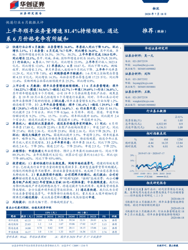 【华创证券】【20200718】快递行业6月数据点评-7页