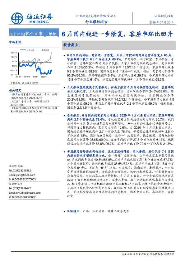 【海通证券】【20200720】6月国内线进一步修复,客座率环比回升-4页