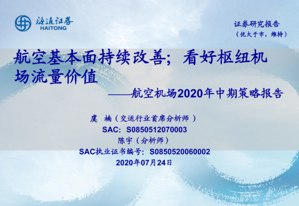 【海通证券】【20200724】航空机场2020年中期策略报告:航空基本面持续改善;看好枢纽机场流量价值-36页