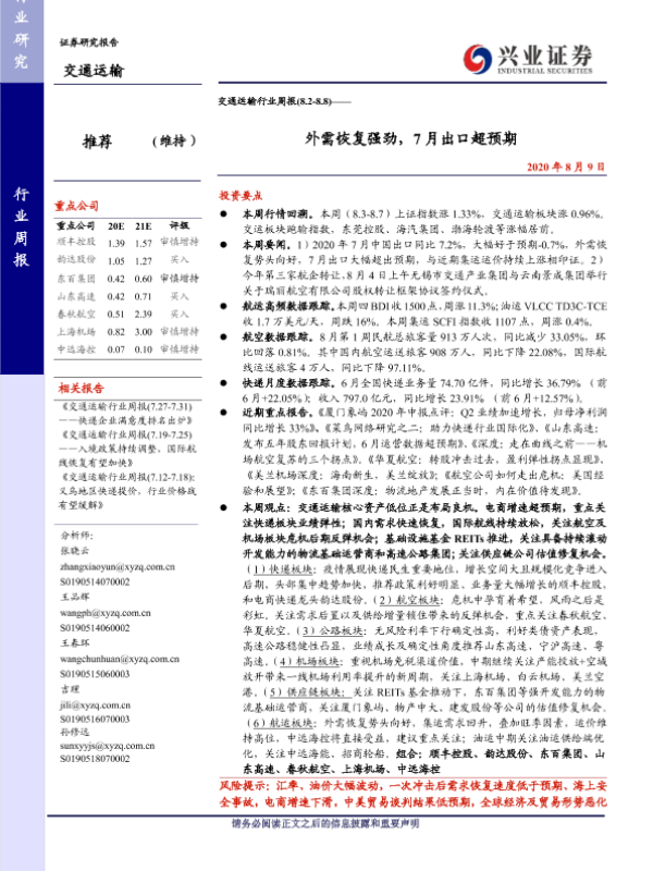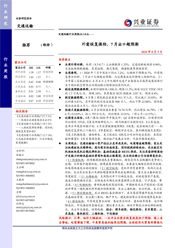 【兴业证券】【20200809】交通运输行业周报:外需恢复强劲,7月出口超预期-23页