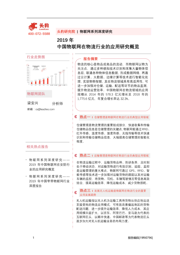 【头豹研究院】【2019】中国物联网在物流行业的应用研究概览-29页