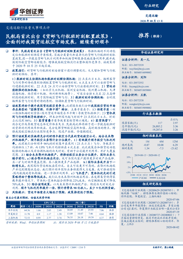 【华创证券】【20200813】民航局首次出台《货邮飞行航班时刻配置政策》,全面利好我国货运航空市场发展,继续看好顺丰-7页