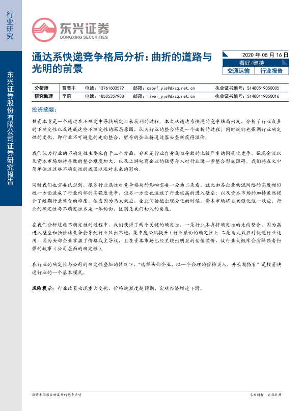 【东兴证券】【20200816】通达系快递竞争格局分析:曲折的道路与光明的前景-22页