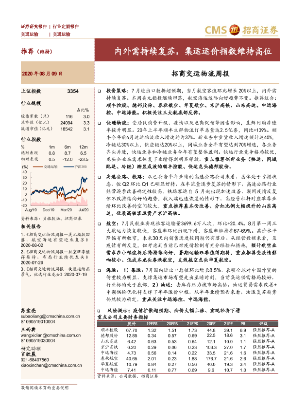 【海通证券】【20200809】招商交运物流周报:内外需持续复苏,集运运价指数维持高位-28页