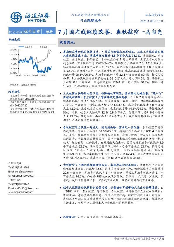 【海通证券】【20200816】7月国内线继续改善,春秋航空一马当先-3页