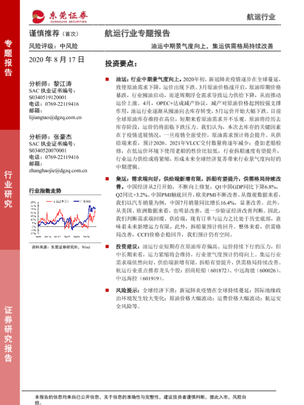 【东莞证券】【20200817】航运行业专题报告:油运中期景气度向上,集运供需格局持续改善-17页