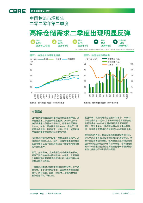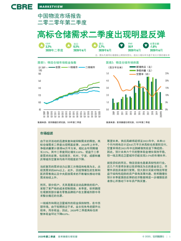 【世邦魏理仕】【20200820】中国物流市场报告二零二零年第二季度-9页