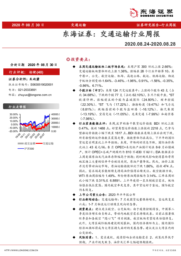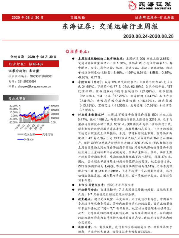 【东海证券】【20200830】交通运输行业周报-12页