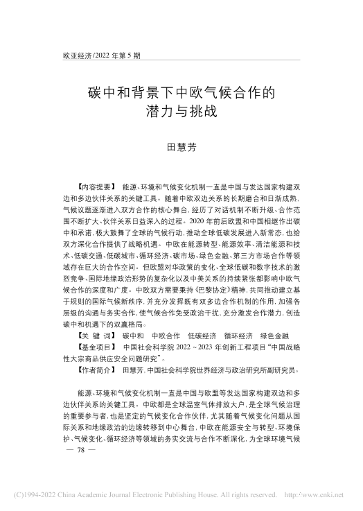 【中国社会科学院】【20220101】碳中和背景下中欧气候合作的潜力与挑战-25页
