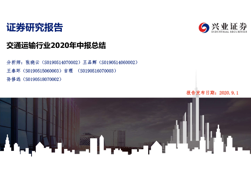 【兴业证券】【20200901】交通运输行业2020年中报总结-43页