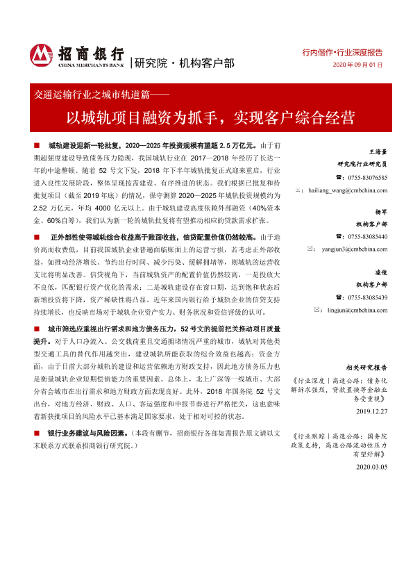 【招商银行】【20200901】交通运输行业之城市轨道篇:以城轨项目融资为抓手,实现客户综合经营-21页