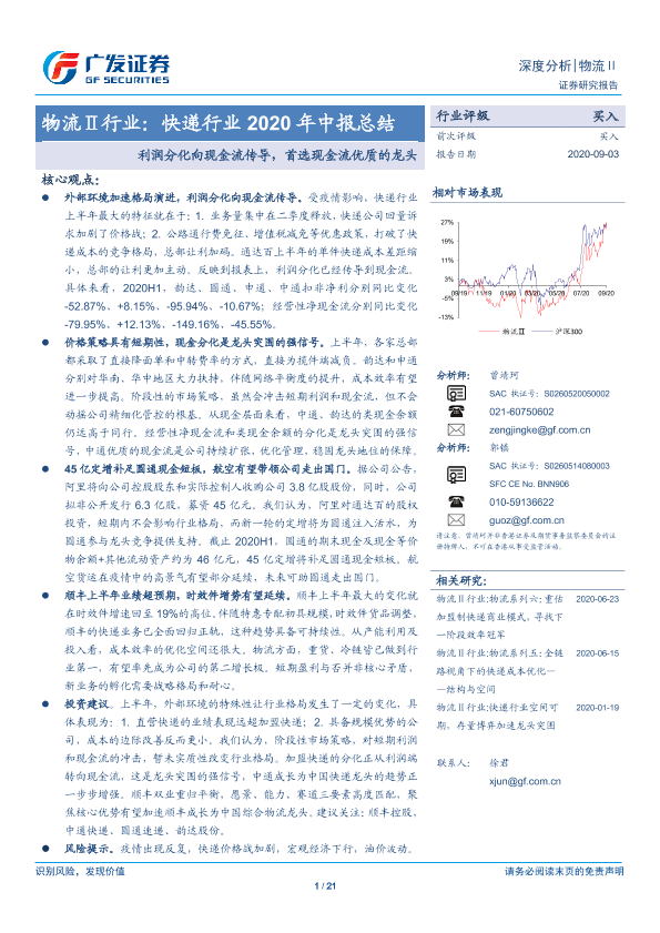 【广发证券】【20200903】快递行业2020年中报总结:利润分化向现金流传导-21页