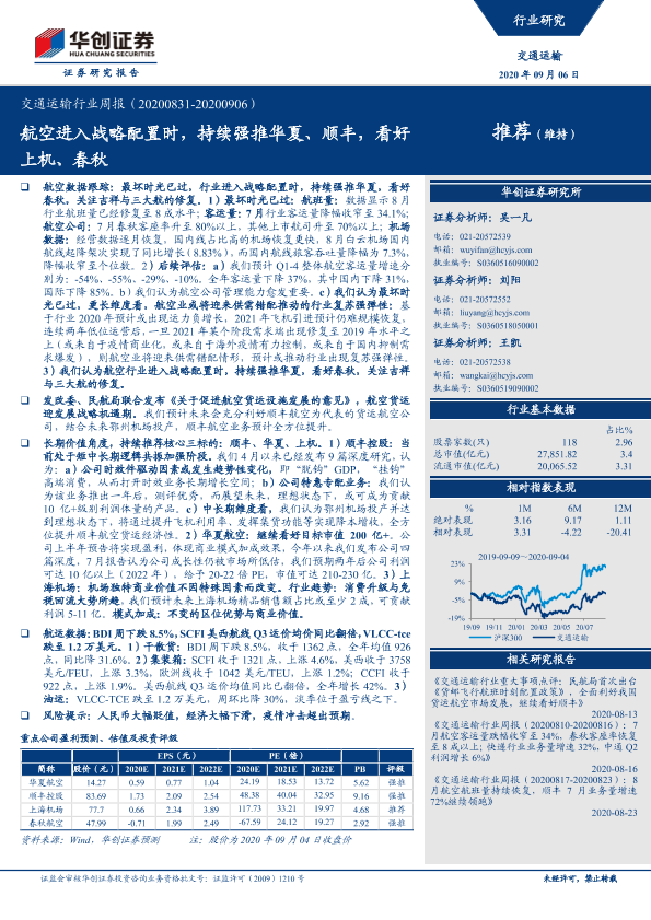 【华创证券】【20200906】交通运输行业周报:航空进入战略配置时,持续强推华夏、顺丰,看好上机、春秋-18页