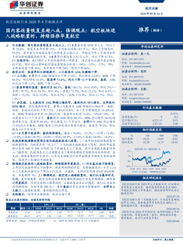 【华创证券】【20200916】航空运输行业2020年8月数据点评-12页