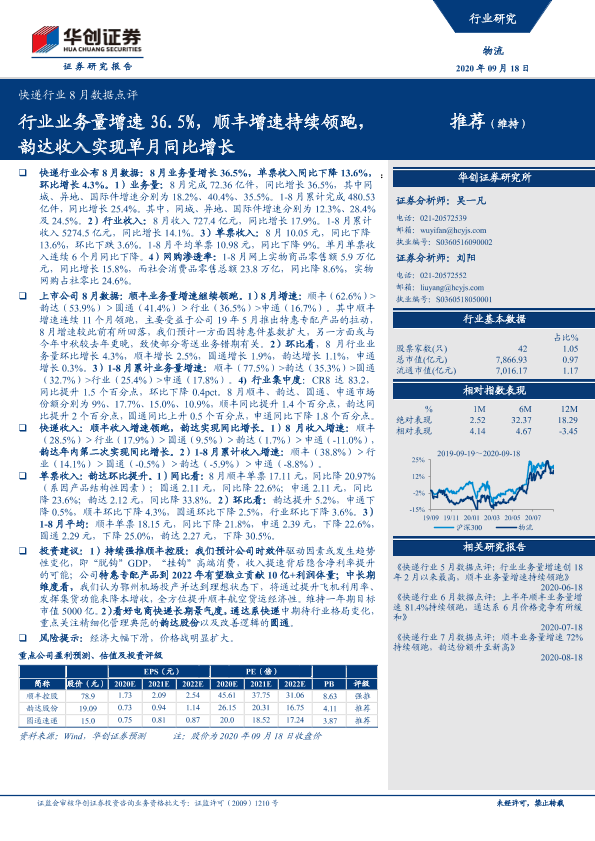 【华创证券】【20200918】快递行业8月数据点评-7页