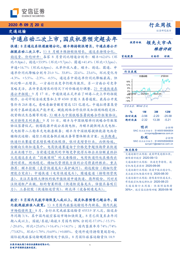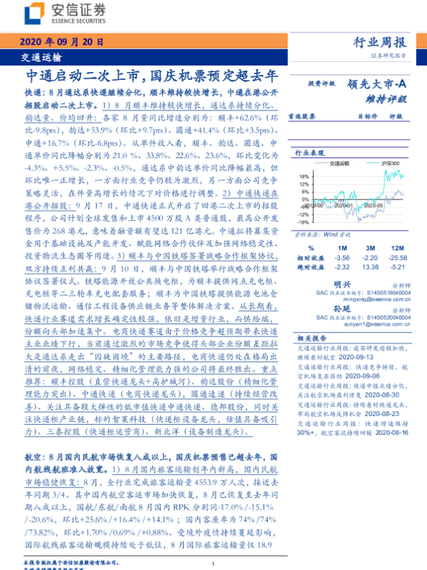 【安信证券】【20200920】交通运输行业周报:中通启动二次上市,国庆机票预定超去年-20页