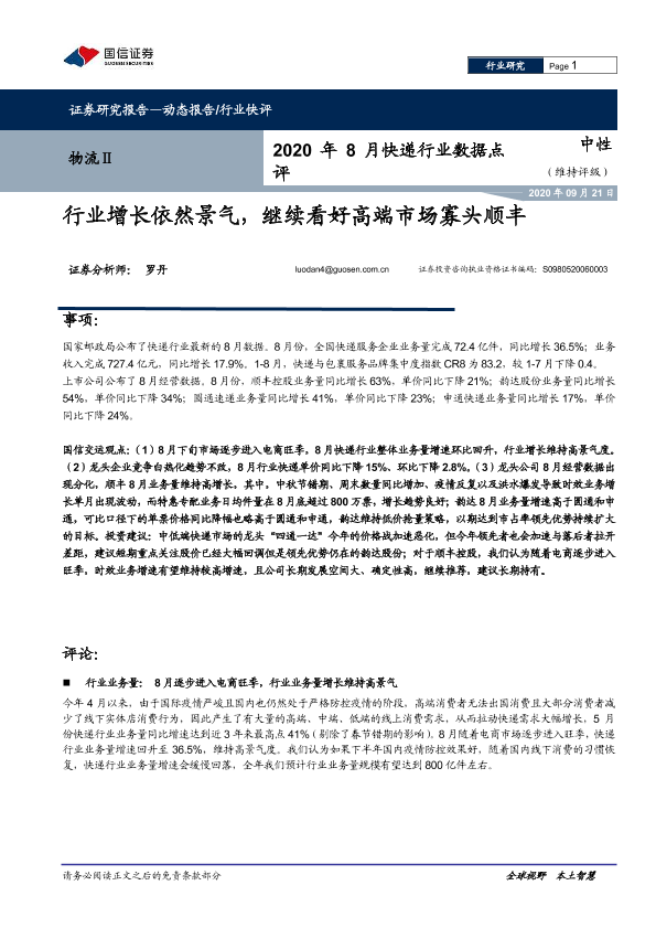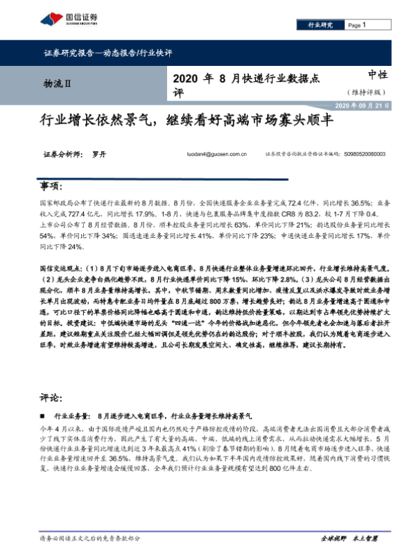 【国信证券】【20200921】2020年8月快递行业数据点评-7页