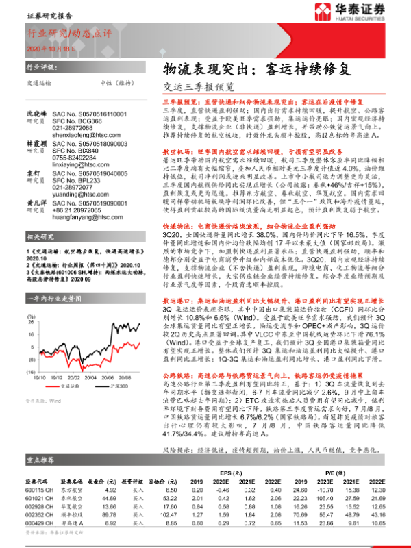 【华泰证券】【20201018】交运三季报预览:物流表现突出:客运持续修复-7页