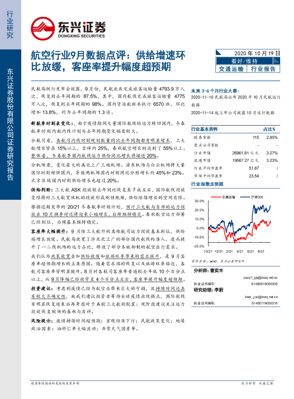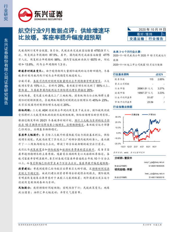 【东兴证券】【20201019】航空行业9月数据点评:供给增速环比放缓,客座率提升幅度超预期-10页