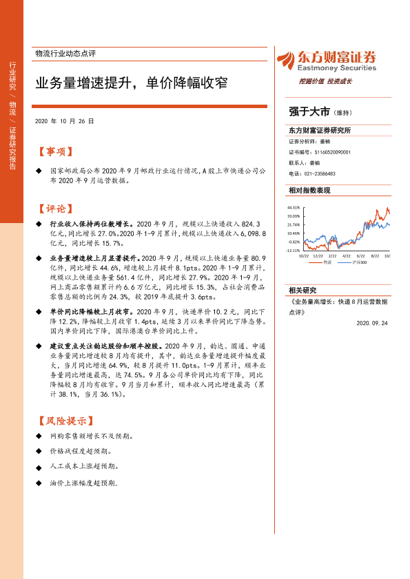 【东方财富证券】【20201026】物流行业动态点评:业务量增速提升,单价降幅收窄-9页