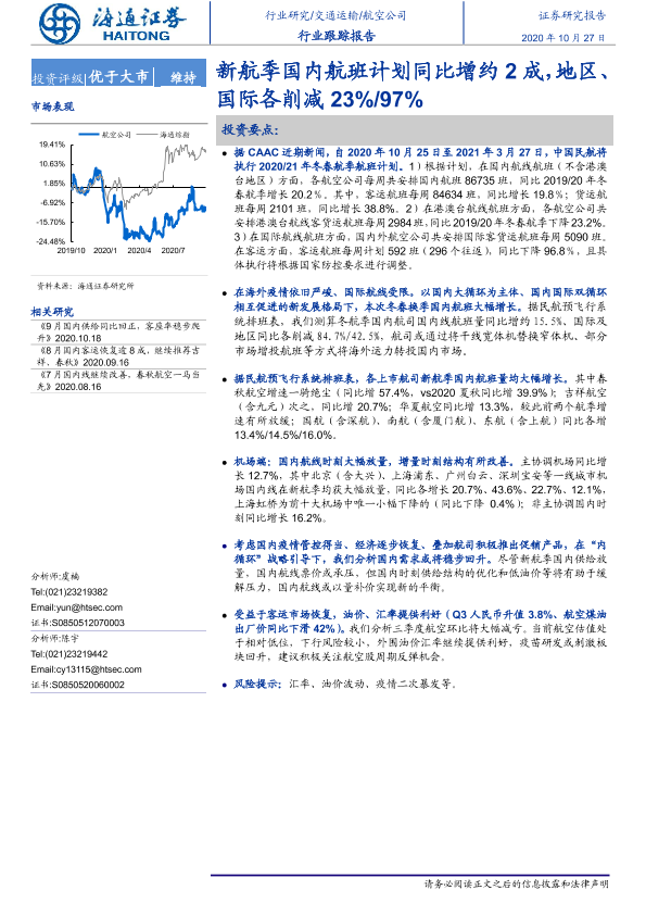 【海通证券】【20201027】新航季国内航班计划同比增约2成,地区、国际各削减23% 97%-4页