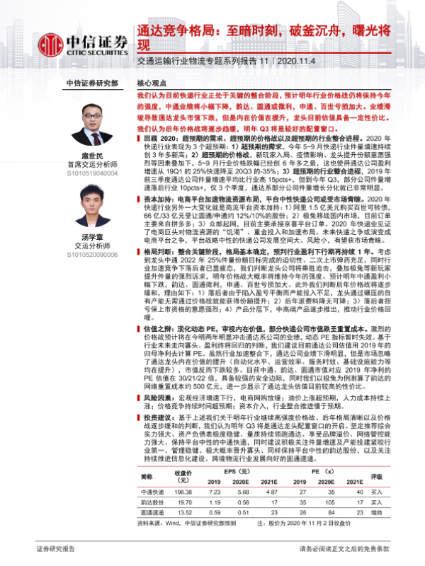 【中信证券】【20201104】通达竞争格局:至暗时刻,破釜沉舟,曙光将现-23页
