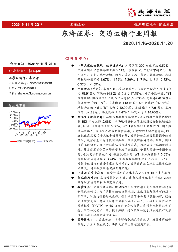 交通运输 疫情防控 股市分析 航运港口 行业周报