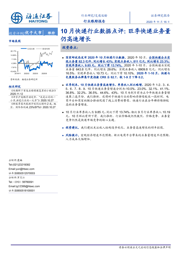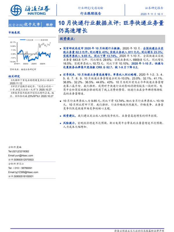 【海通证券】【20201116】10月快递行业数据点评:旺季快递业务量仍高速增长-7页